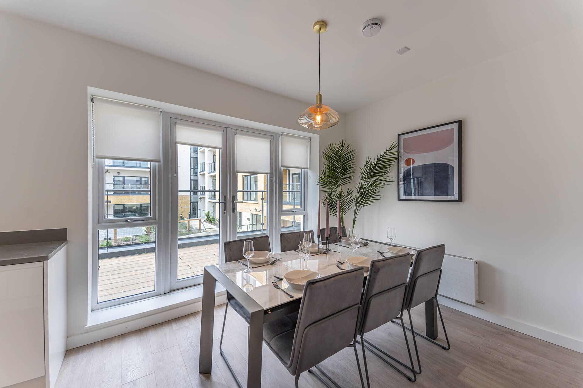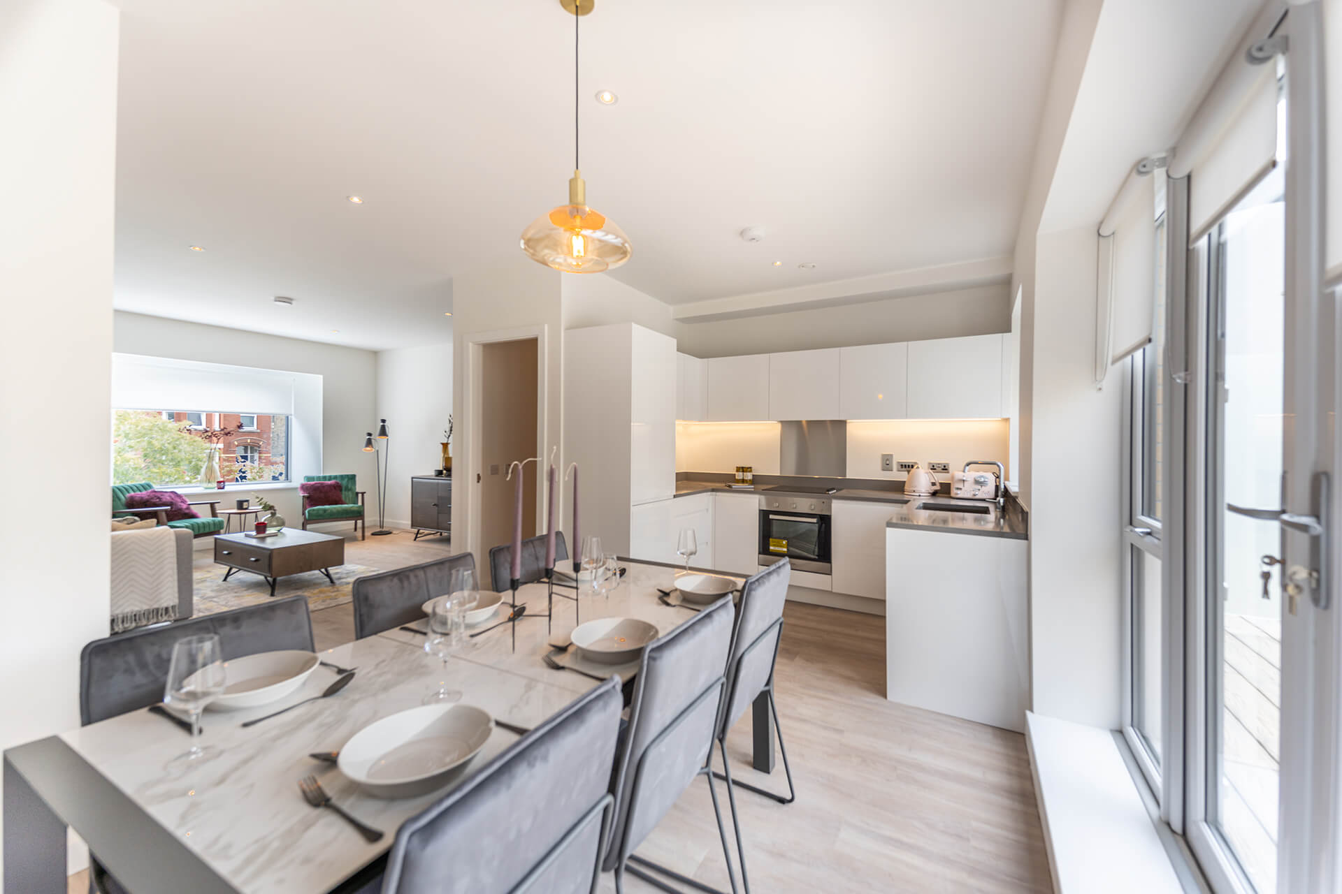 Contemporary and comfortable, the well-proportioned living rooms are designed to blend in with the bespoke furniture that comes with the apartments. Elegantly designed, they are all wired for TV, cable, satellite and broadband services. Sit back and relax …